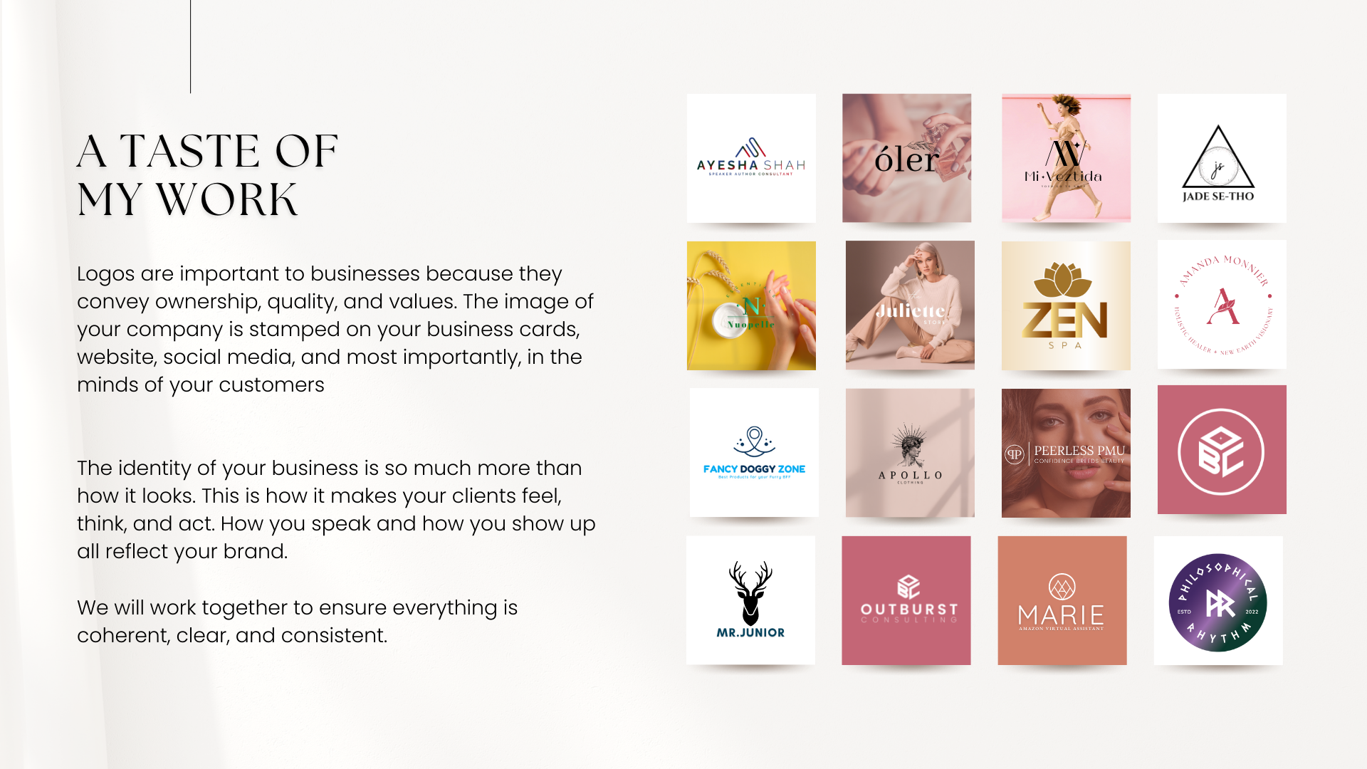 I worked with International Clients, Speakers, Authors, Coaches, Consultants, VAs, Beauty Industry Business Owners, and Ecommerce such as Outburst Consulting, Fancy Doggy Zone, Mr. Junior, Jade-Se-Tho, Zen Spa, Peerless PMU, Amanda Monnier, Philosophical Rythm, and Ayesha Shah. My experiences in the creative industry have given me the opportunity to work with a variety of clients.